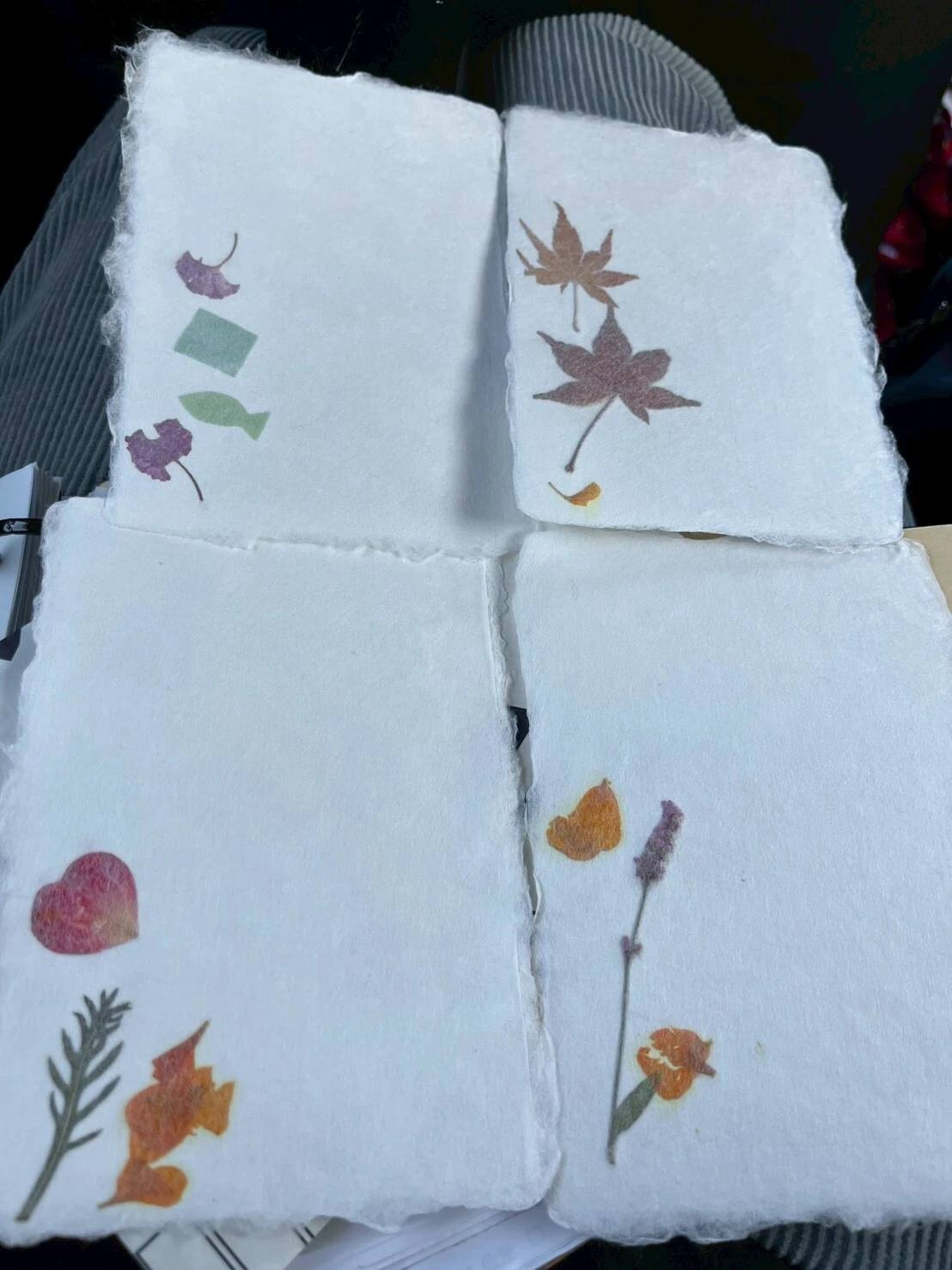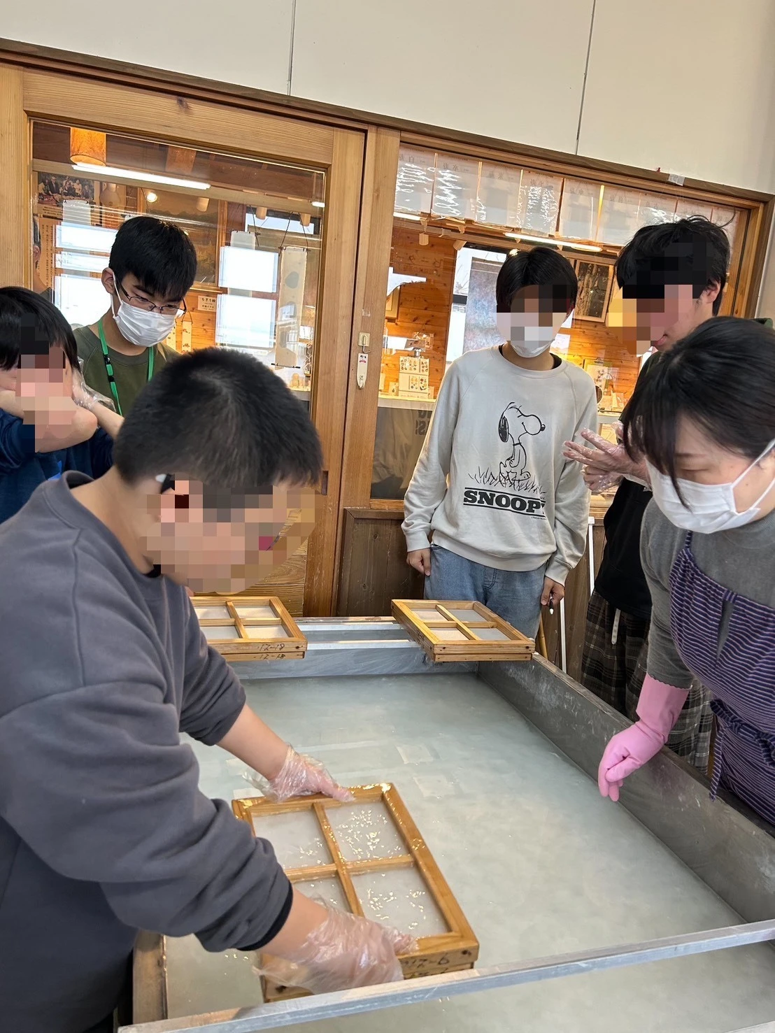簀桁(すげた)と言う道具を使ってみんな上手に紙をすき、各々、好きな押し花を飾って、素敵なはがきを作ることができました。