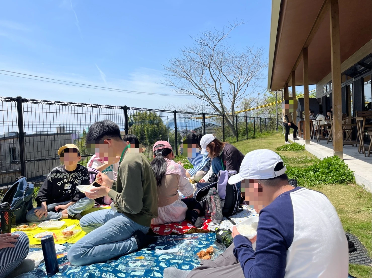 心配していたお天気もみんなの気持ちが届いたようで絶好の行楽日和☀️でした‼️お昼ごはんは、絵本美術館のテラスにレジャーシートを敷いて唐揚げ弁当を食べました。